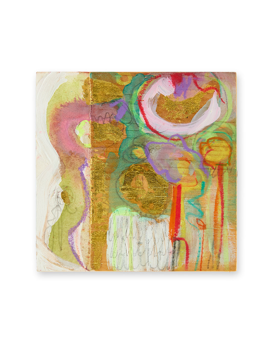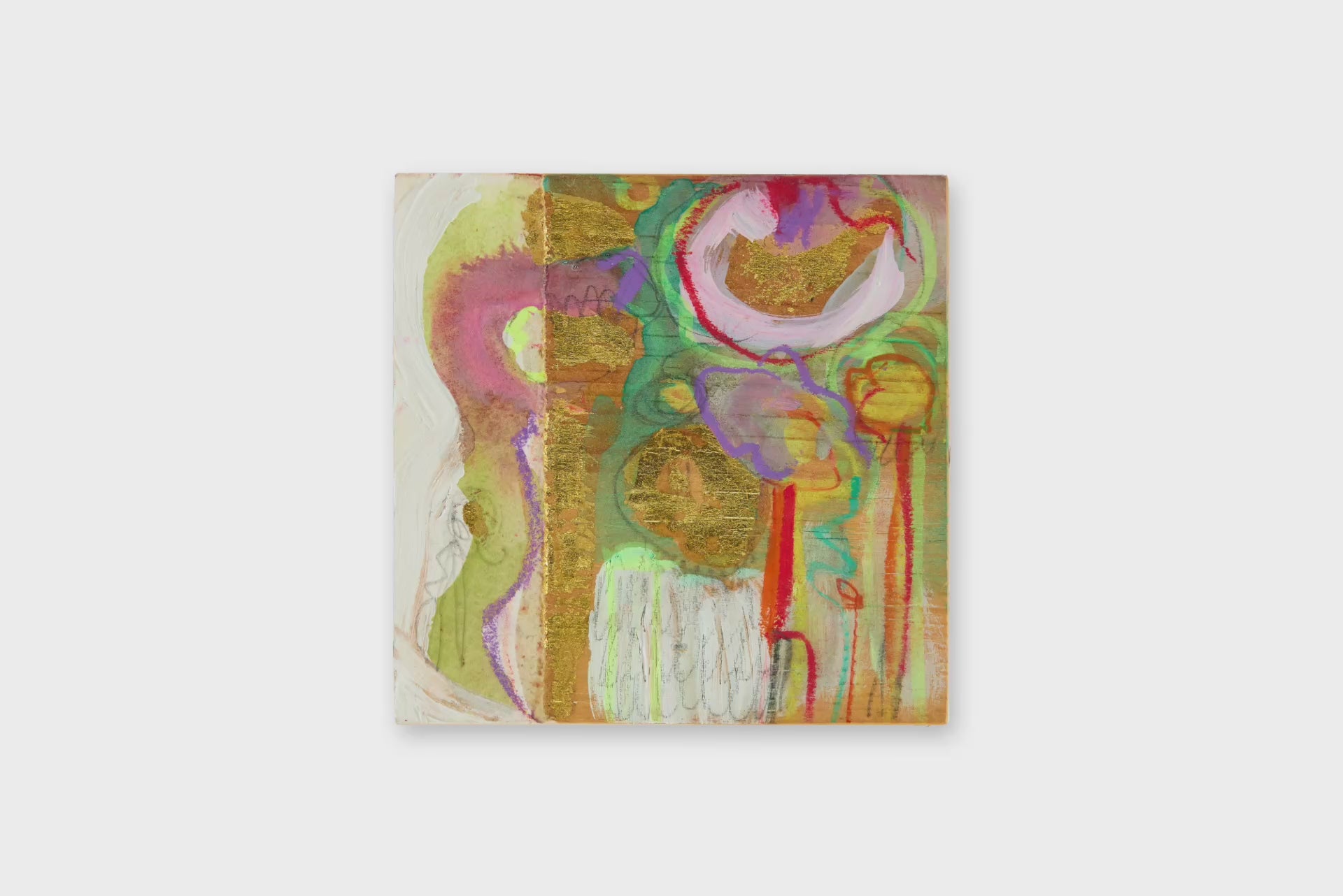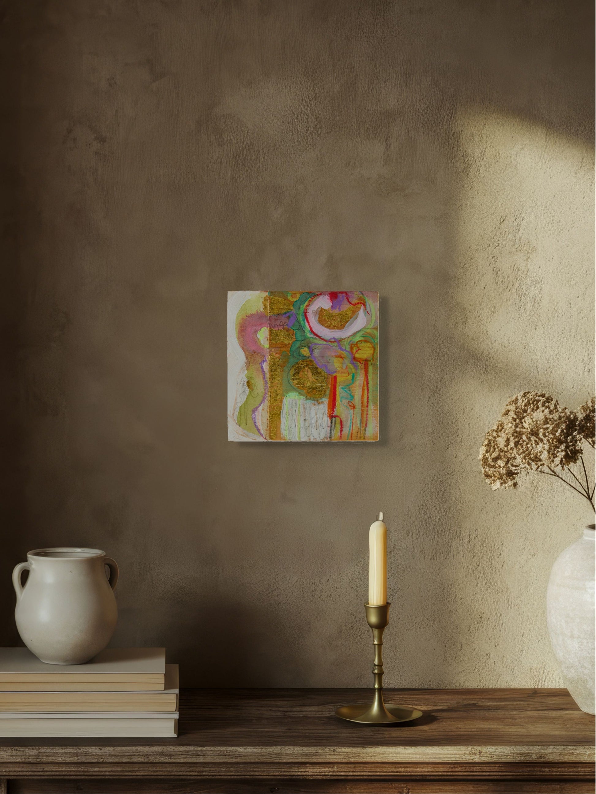 In Fleur Lilias, Emilie Rondeau captures the inner world of flowers—not as still life, but as sensation. Rounded, overlapping shapes echo the heart of a bloom, while delicate lines suggest growth pushing from beneath. It’s a tender abstraction, where energy and stillness coexist. On a small scale, it delivers emotional impact—reminding us that the most powerful moments often unfold in quiet spaces.