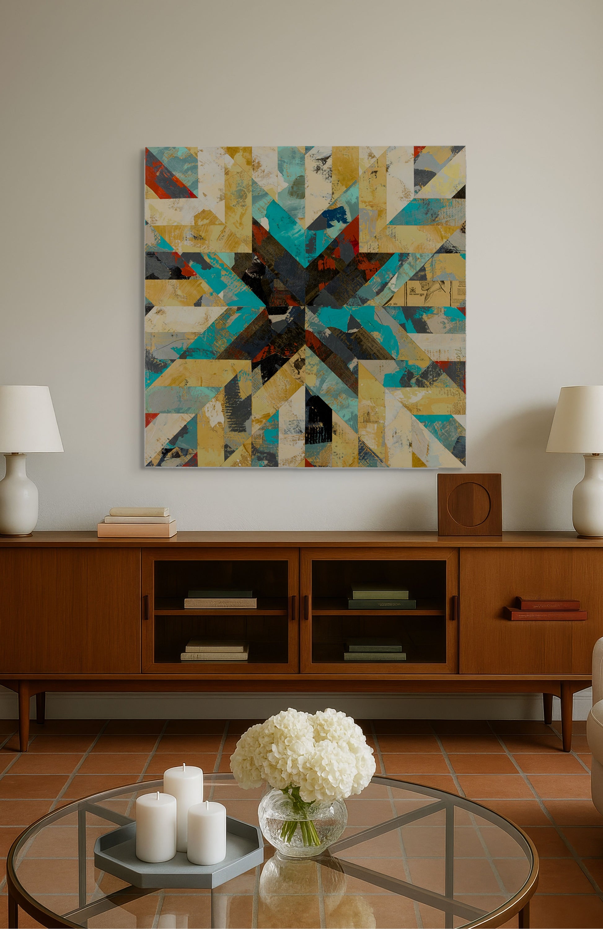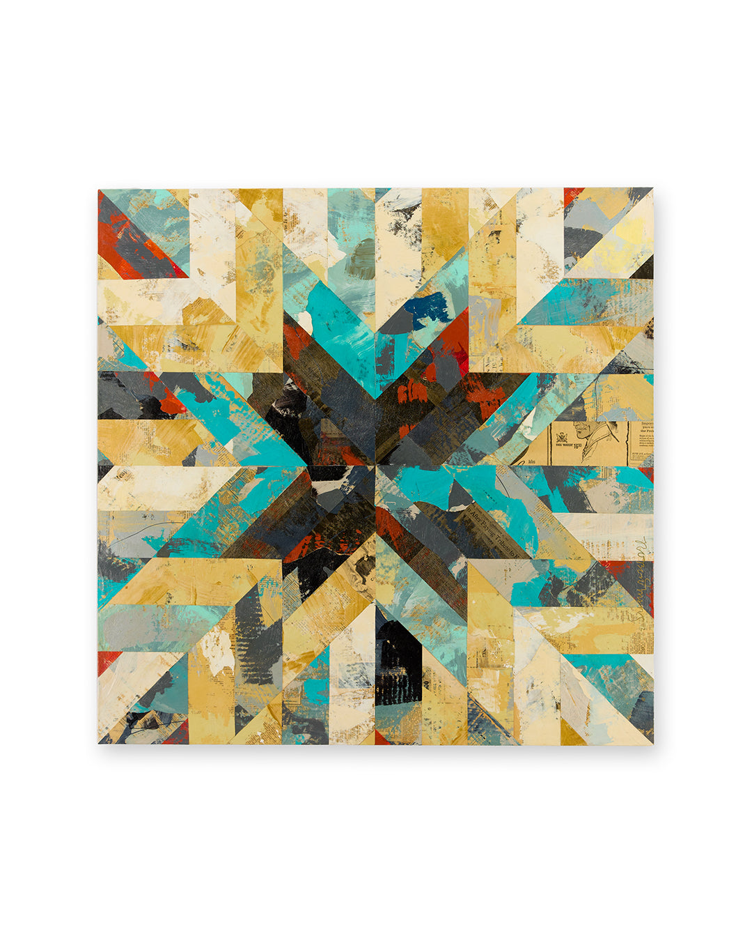 Path of Least Resistance channels Robert Mars’ signature style: a layered, pop-inspired tribute to postwar optimism and the graphic punch of mid-century design. Arrows converge in rhythmic formation, guiding the eye inward—toward center, toward memory, toward meaning. Bits of retro print, color, and form overlap like fragments of culture remembered and remixed.